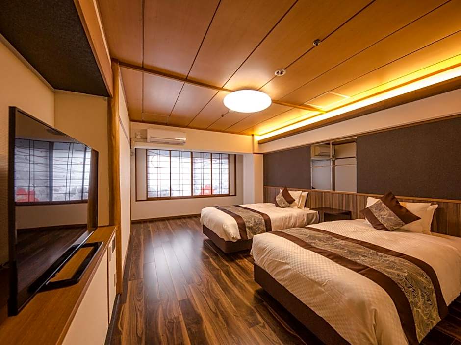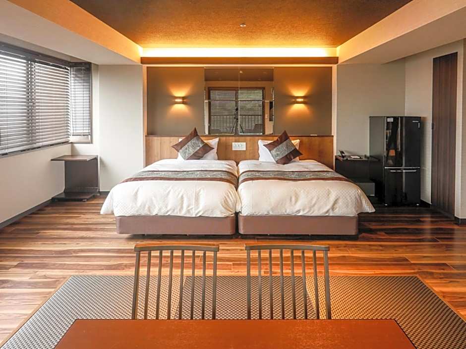 Guests will have a special experience as this twin room features a private open-air bath. Offering free toiletries and bathrobes, this twin room includes a private bathroom with a bath, a shower and a bidet. The spacious twin room offers air conditioning, a wardrobe, an electric kettle, pajamas, as well as a flat-screen TV with satellite channels. The unit offers 2 beds.